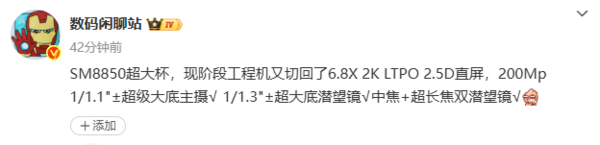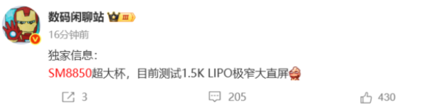 【CNMO科技消息】8月25日,有数码博主爆料,一款搭载第二代骁龙8至尊版移动平台的超大杯机型现阶段工程机又切回了约6.8英寸2K LTPO 2.5D直屏。此外,该机的影像配置为:2亿像素大底主摄+1/1.3英寸超大底潜望镜头+中焦、超长焦双潜望镜头。结合评论区信息,该机应该为OPPO Find X9 Ultra。